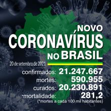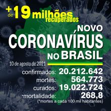 BRASIL TEM 18.687.203 CURADOS DOS 19.953.501 CASOS CONFIRMADOS DE