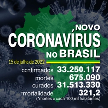 BRASIL TEM 33.156.157 CURADOS DOS 34.245.374 CASOS CONFIRMADOS
