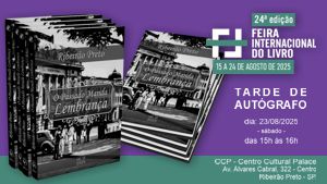 23/06/2025 ‘O PASSADO MANDA LEMBRANÇA’ ESTARÁ PRESENTE NA X MOSTRA DOS ESCRITORES DE RIBEIRÃO PRETO E REGIÃO De 25 a 28 de junho, a cidade se transforma mais uma vez em palco de celebração à literatura